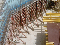 “So for the first time in Bahrain,” says Amir Delghandi, the general director of Paschal Concrete Forms, “Paschal supplied its modular formwork with special supporting jacks for casting 4-m-deep lift pit and 260 m of single-side retaining walls for each basement. In addition, Paschal formwork was used for the construction of columns, lift shafts, shear wall and ramp.”