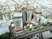 The architectural theme combines a postmodern architectural style with an Arabian heritage basis to generate a form of four towers above a welcoming podium surrounding an outdoor main plaza.