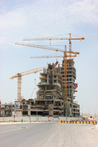 Also in Qatar, Liebherr tower cranes again played a key role in lifting and placing reinforcement, formwork systems and steel beams at the Business Park project in Al Najima, Doha. The Business Park project features eight nine-storey towers, a Crowne Plaza hotel, conference hall, and six other towers from six to eight floors.
