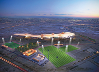 A 3,000-seat outdoor tennis stadium will be a focal point of the design, featuring a roof structure that illuminates at night. Additional facilities will include football fields, a 400-m athletics track, a tennis stadium, beach volleyball courts, a gymnasium, sports medicine centre, sports science faculty and laboratories.