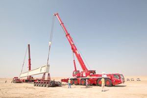 Integrated Logistics Company (ILC) relied on the powerful performance of its new Demag AC 300-6 cranes when it was tasked with bringing pre-assembled concrete supports to a construction site near Subiya for the Sheikh Jaber Al Ahmad Al Sabah Causeway project.