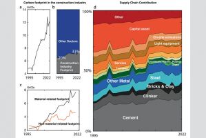 A recent Nature Communications study indicates that even if all other sectors went net-zero today, emissions from construction alone would still push the world beyond the Paris Agreement’s 1.5 deg C target by 2050. The sector produces roughly a third of global CO₂ emissions, mostly from manufacturing cement, steel, and bricks.