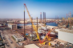 A Demag CC 3800-1 lattice boom crawler crane proved to be the perfect machine to lift three 72-m-long, 130-tonne spud legs from a barge – a job that not only required a powerful crane, but also the right touch. UAE-based crane service provider Al Faris was tasked with the mission at Hamriyah in Sharjah, at one of the biggest shipyards in the region. ...