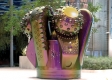 A gigantic iridescent, oil drill-shaped sculpture by Kuwaiti artist Monira Al Qadiri ...